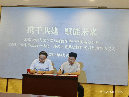 与海南华侨中学美丽沙分校举行推进“大中小学思政课一体化”座谈会暨共建校外实习基地签约仪式。海南华侨中学美丽沙分校党支部书记、校长李国辉,专职副书记张田喜,副校长吴运磊,户外直播