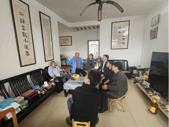 领导关切地询问两位老教授的日常生活和身体状况,向他们多年来为户外直播