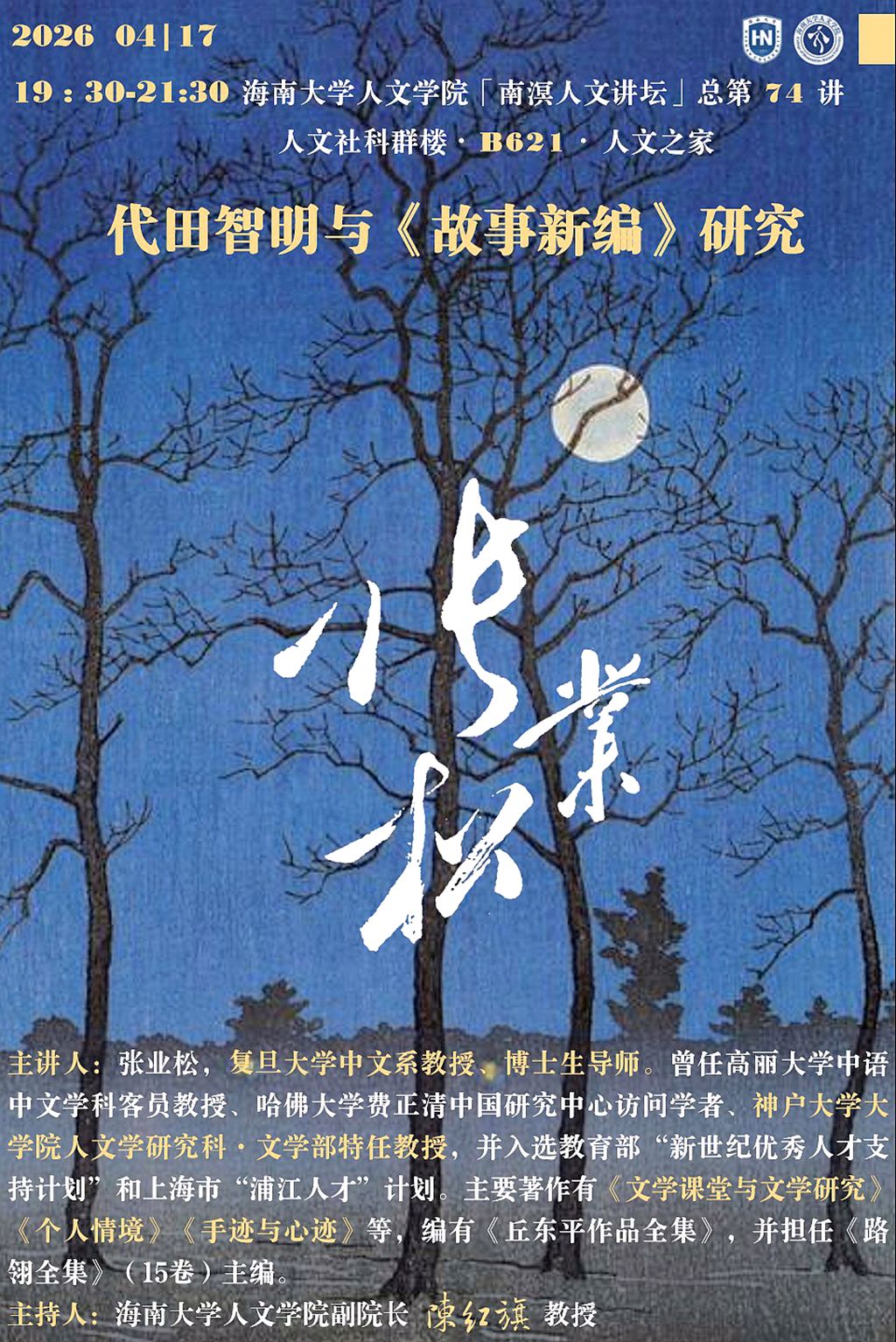 【学术预告】户外直播 “南溟人文讲坛”第74讲 张业松:代田智明与《故事新编》研究