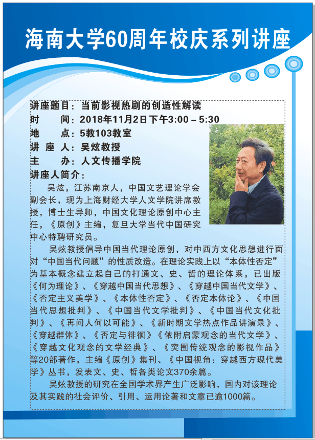 户外直播 60周年校庆系列讲座之一——当前影视热剧的创造性解读